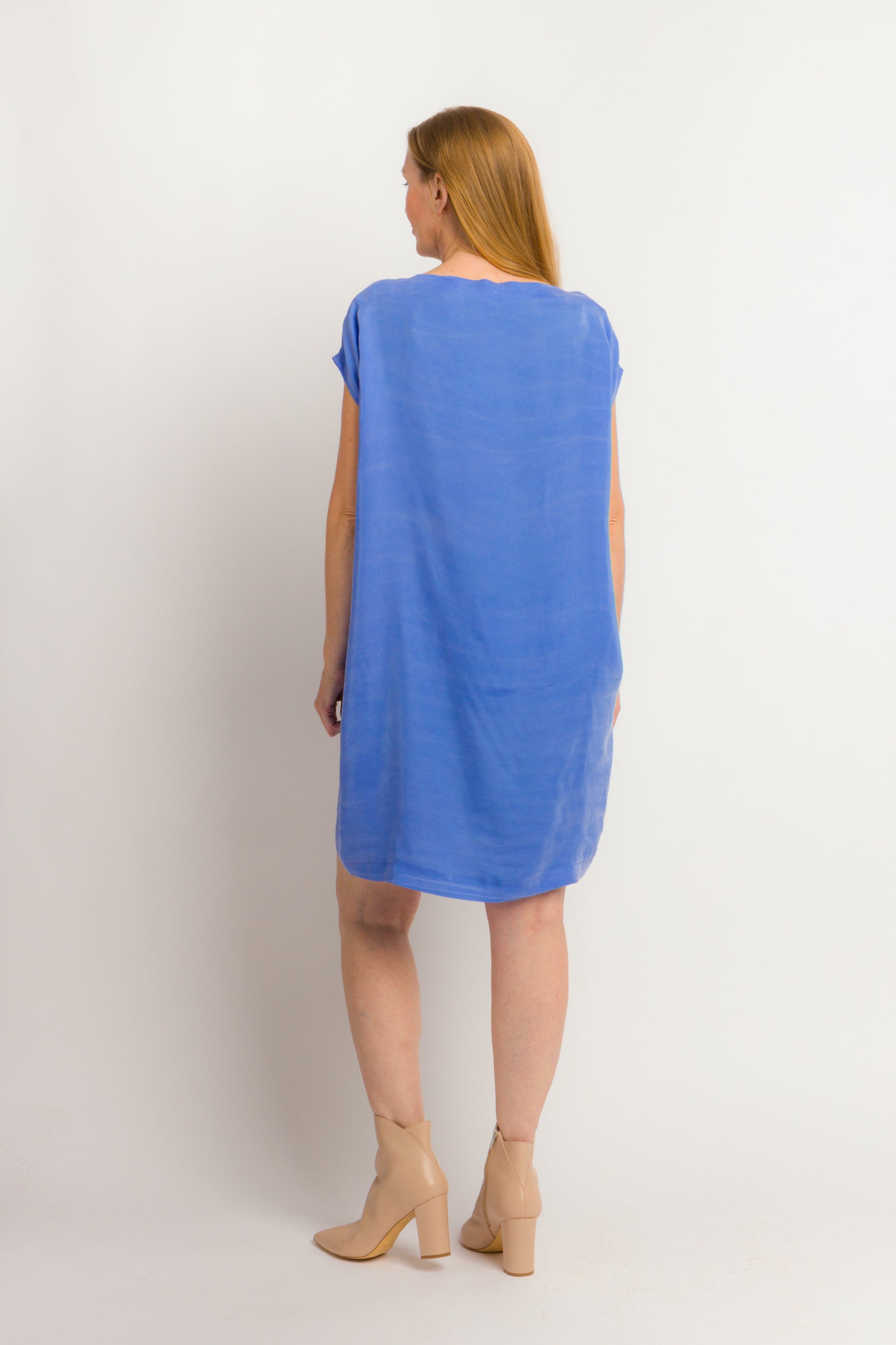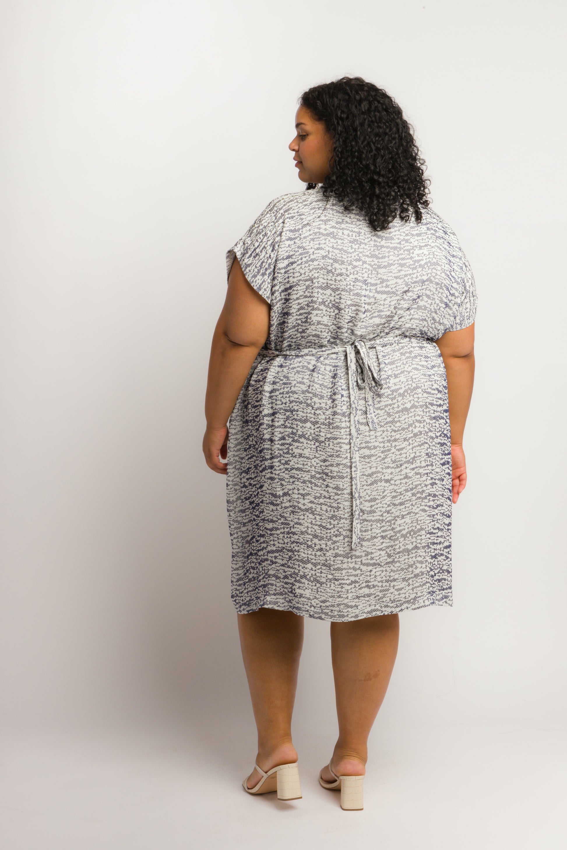 The Gemini Dress is named for its two-in-one nature. It can be tied two ways for two totally different looks. It has a shallow funnel neckline, short grown on sleeves and a long tie belt. This versatile dress can be made with lightweight or mid weight fabrics with a fluid or soft drape as well as stable knits.